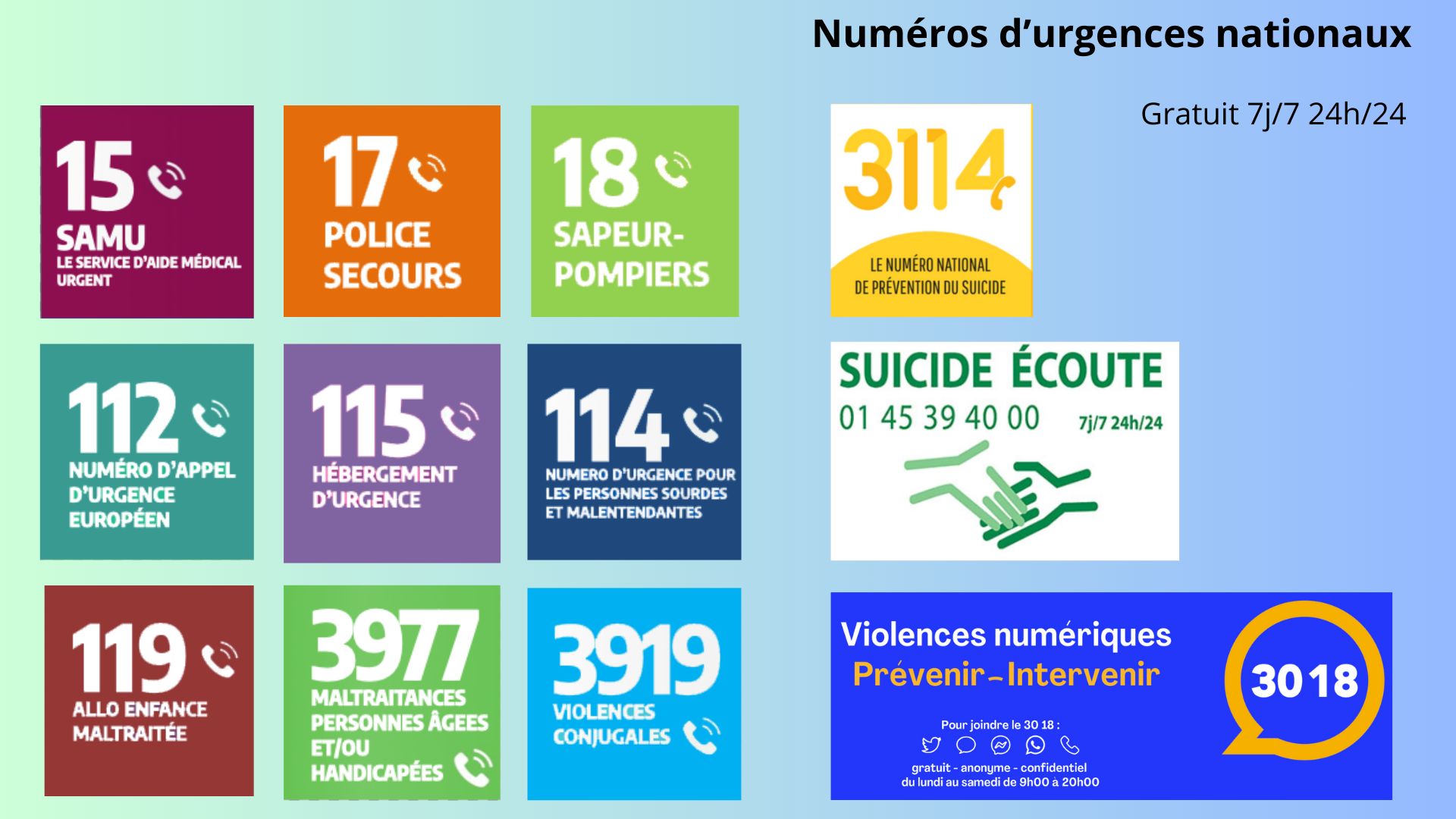 numéros d'urgence nationaux
